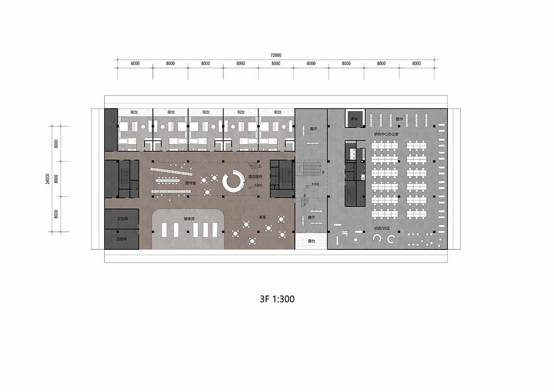 This project is a Sino French cooperative pig research and development community with reception and isolation functions. The R&D center is located near the direction of incoming vehicles at the highway exit; The reception and quarantine center is located at a remote location. To establish the image of the entire park as a 'biotechnology research and development park'. Three different materials and forms of light courtyards are inserted into the building, bringing harmless natural light into the interior and illuminating all important public transportation spaces. These traffic spaces bathed in natural light combine into a clear and rich three-dimensional social network.